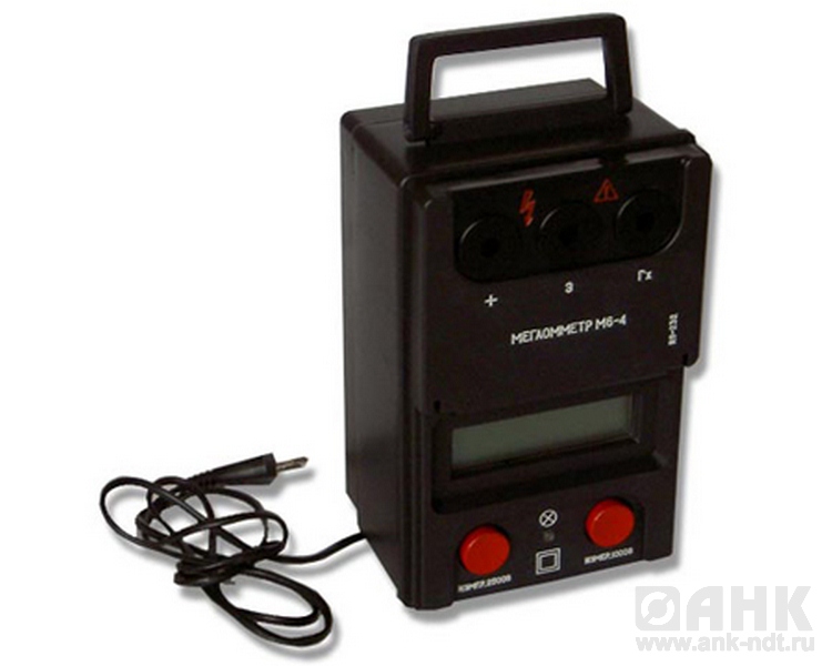 М6-4 – предназначен для измерения сопротивления изоляции электрооборудования в случаях необходимости повышенной мощности источника рабочего напряжения мегаомметра (например при контроле генераторов без демонтажа системы охлаждения и при контроле цепей вторичной коммутации, кабелей).
