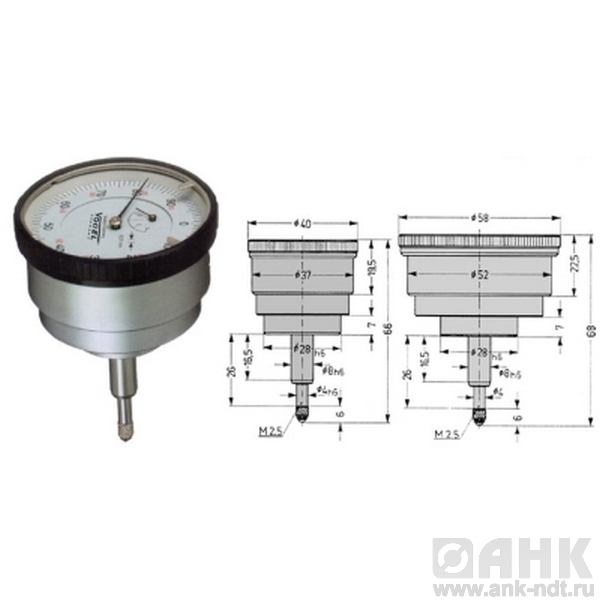 - рычажно-зубчатая (ИГ), кинематическая цепь которой составлена из двух рычажных пар и зубчатой пары. Сам измерительный стержень изготавливается из нержавеющей стали, с глубоким арретированием, а головка характеризуется высокой степенью износостойкости. Производятся с ценой деления в 1 и 2 мкм;
